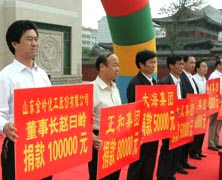 在6月1日廣饒縣開展的“慈心一日捐”活動中,公司董事長趙曰嶺個人向廣饒縣慈善總會捐款10萬元。近幾年來,在企業迅速發展的同時,趙總不忘回報社會,積極為地方經濟發展和社會慈善事業捐款捐物,幫助附近村莊修路、打井,至今已累計捐款500多萬元,樹立了一個勇于承擔社會責任企業家的良好形象。圖為企業發展部趙曰森經理代表趙董事長出席捐款儀式。