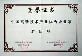 在中國高新技術企業發展評價中心于9月28日在北京組織召開的“中國高新技術產業發展高峰會”上,我公司被評為“中國新技術產業優秀企業”,董事長趙曰嶺被評為“中國高新技術產業優秀企業家”。這一榮譽的獲得,標志著公司在發展高新技術產業,打造科技競爭優勢方面取得了卓越成績。
