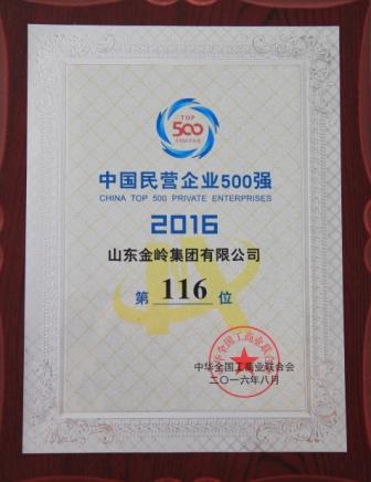 8月25日,由全國工商聯主辦,工業和信息化部、國家工商總局支持的2016中國民營企業500強發布會在京召開。會議揭曉了“2016中國民營企業500強”榜單,集團公司再次入圍,位列116位。