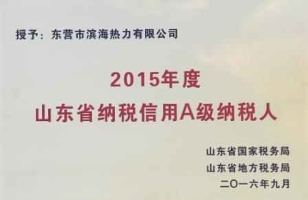 稅收是國家財政收入的主要來源。作為東營市重點納稅大戶,公司在多年來的發展中始終堅持依法誠信納稅、及時足額繳納稅款,積極履行社會責任,多次受到稅務部門的表彰,主要財稅指標一直名列全市前茅,為推動地方經濟發展做出了重要貢獻。 公司入選《2015年度山東省納稅信用A級納稅人》名單,進一步彰顯了公司依法經營、誠信納稅、奉獻社會的責任理念。