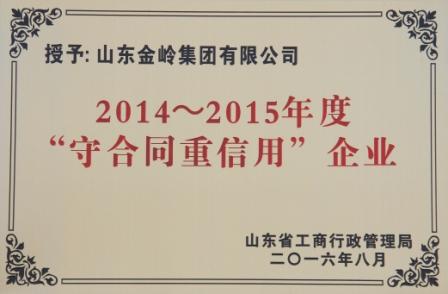 近日,集團公司榮獲山東省2014-2015年度“守合同重信用”企業榮譽稱號。這是我公司自2004年首次獲評山東省“守合同重信用”企業以來,連續十二年獲得此項殊榮。榮獲“守合同重信用”企業榮譽稱號,是山東省工商行政管理機關對企業合同管理水平和信用狀況的綜合評價,也是政府部門對企業“履約信用”方面的充分肯定。