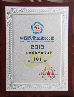 2019年8月22日,由全國工商聯、青海省人民政府共同主辦的“2019中國民營企業500強峰會”在青海西寧舉行。會議發布了2019中國民營企業500強系列榜單,公司入榜“2019中國民營企業500強”,位列第191位,同時入榜“2019中國民營企業制造業500強”,位列第110位。