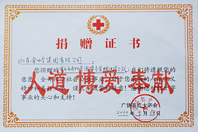 2020年9月24日,廣饒縣紅十字會(huì)頒發(fā)證書,對(duì)公司積極響應(yīng)市委、市政府號(hào)召,向重慶市酉陽縣浪坪鄉(xiāng)官楠村捐款的行動(dòng)表示感謝。在捐贈(zèng)證書上,廣饒縣紅十字會(huì)表示:“您捐贈(zèng)的重慶市酉陽縣浪坪鄉(xiāng)官楠村5萬元,我們將遵照您的意愿,全部用于社會(huì)公益事業(yè)。對(duì)于您崇高的人道主義精神和善行義舉,謹(jǐn)表示誠(chéng)摯的敬意!感謝您對(duì)紅十字事業(yè)的關(guān)心和支持!” 扶貧酉陽,是黨中央、國(guó)務(wù)院和山東省委、省政府交給東營(yíng)的一項(xiàng)重大任務(wù),是我們義不容辭的責(zé)任。沉甸甸的捐贈(zèng)證書,是對(duì)公司積極承擔(dān)社會(huì)責(zé)任的充分肯定。在多年來的發(fā)展歷程中,公司始終不忘創(chuàng)業(yè)初心,牢記發(fā)展使命,用愛心回饋社會(huì),積極參與愛老敬老、捐資助學(xué)、扶危濟(jì)困、慈善賑災(zāi)、新農(nóng)村建設(shè)、抗擊臺(tái)風(fēng)等公益事業(yè),為地方各項(xiàng)社會(huì)事業(yè)發(fā)展做出了突出貢獻(xiàn)。