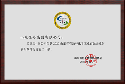 2020年12月16日,第十屆中國化工產學研高峰論壇在廣饒隆重召開,2020山東省石油和化學工業100強企業發布會同期舉行。在會上,中國化工情報信息協會、山東省化工情報信息協會、全國石油化工信息總站聯合發布了2020山東省石油和化學工業百強企業排名暨百強企業創新指數,金嶺集團位列2020山東省石油和化學工業100強企業第10名,并入圍2020山東省石油和化學工業百強企業創新指數排行榜前二十強,位列第12名。