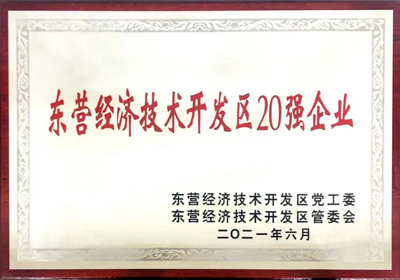 2021年7月,在東營經(jīng)濟(jì)技術(shù)開發(fā)區(qū)黨工委、東營經(jīng)濟(jì)技術(shù)開發(fā)區(qū)管委會(huì)組織召開的“兩優(yōu)一先”表彰暨“實(shí)干突破”大競賽、大比武表彰獎(jiǎng)勵(lì)大會(huì)上,山東金嶺新材料有限公司被授予“東營經(jīng)濟(jì)技術(shù)開發(fā)區(qū)20強(qiáng)企業(yè)”,以表彰新材料公司為東營開發(fā)區(qū)經(jīng)濟(jì)建設(shè)取得的突出成績。