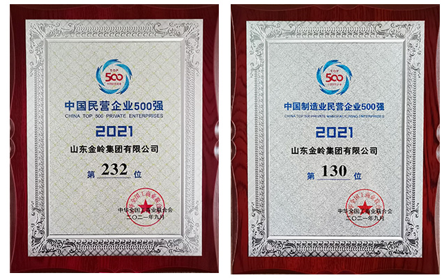 金嶺集團入圍2021中國民營企業500強、中國制造業民營企業500強