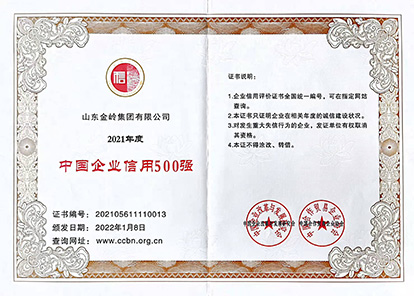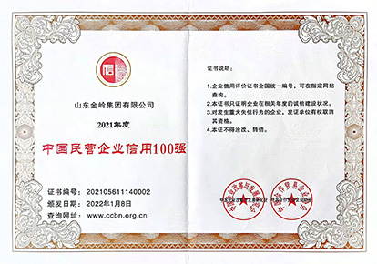 2022年1月8日,由中國企業改革與發展研究會、中國合作貿易企業協會聯合主辦的“2022中國企業信用發展論壇暨第十三屆誠信公益盛典”在北京召開,會議隆重發布2021年度“中國企業信用500強”、“中國民營企業信用100強”榜單,金嶺集團榮獲兩項榮譽,并在大會上受到表彰。作為《企業誠信管理體系》標準的起草單位,多年來公司高度重視企業誠信體系建設,堅持誠信經營,提升了全體員工的誠信意識,在社會上樹立了良好的企業信用形象。