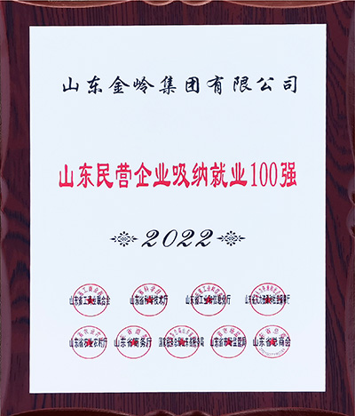 2022年9月,山東省工商業(yè)聯(lián)合會、山東省科學(xué)技術(shù)廳、山東省工業(yè)和信息化廳等9個單位聯(lián)合授予金嶺集團“山東民營企業(yè)吸納就業(yè)100強”榮譽稱號,對公司在緩解當?shù)鼐蜆I(yè)壓力、穩(wěn)就業(yè)、保民生方面做出的突出貢獻給予充分肯定并進行表彰。