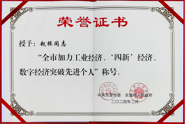 2024年2月20日,在東營(yíng)市委、市政府召開(kāi)的東營(yíng)市2023年度綜合表彰暨高質(zhì)量招商引資項(xiàng)目建設(shè)大會(huì)上,山東金嶺集團(tuán)有限公司被評(píng)為“東營(yíng)市納稅突出貢獻(xiàn)企業(yè)”,總裁趙棟被授予“全市加力工業(yè)經(jīng)濟(jì)、‘四新’經(jīng)濟(jì)、數(shù)字經(jīng)濟(jì)突破先進(jìn)個(gè)人”榮譽(yù)稱(chēng)號(hào),以表彰公司在復(fù)雜的經(jīng)濟(jì)形勢(shì)下,依法納稅、誠(chéng)信經(jīng)營(yíng),對(duì)地方經(jīng)濟(jì)發(fā)展做出的突出貢獻(xiàn)。