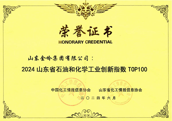 2024年6月21日,在中國化工情報信息協會、山東省化工情報信息協會組織召開的2024年度化工產學研論壇暨化工行業新質生產力發展推進大會上,山東金嶺集團有限公司被授予“2024山東省石油和化學工業創新指數TOP100”,以表彰公司在深入實施創新驅動和綠色可持續發展戰略、實現石油和化工產業的高質量和綠色低碳循環發展中做出的突出貢獻。