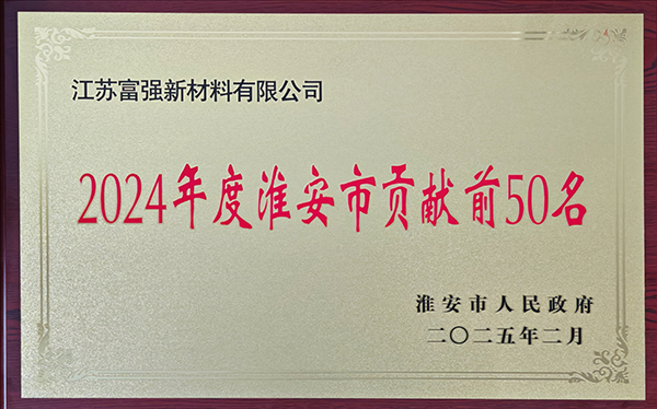2025年2月5日,淮安市重特大項目攻堅暨優化營商環境大會召開,江蘇富強新材料有限公司被評為“2024年度淮安市貢獻前50名”。