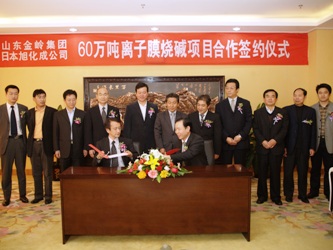 2009年4月27日,我公司與日本旭化成集團在東營市開發(fā)區(qū)管委會就60萬噸離子膜燒堿電解裝置舉行項目合作簽約儀式,公司董事長趙曰嶺與日本旭化成全球營銷總監(jiān)一色聰出席簽約儀式并代表雙方簽字,東營市副市長、開發(fā)區(qū)管委會主任李金琨出席了簽約儀式并接見日方客人一行。電解裝置的順利簽約,標(biāo)志著公司60萬噸離子膜燒堿項目進(jìn)入實質(zhì)性進(jìn)展階段。