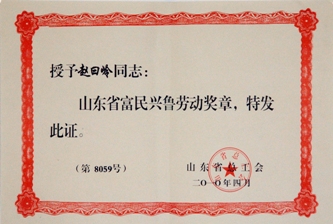 公司董事長趙曰嶺榮獲山東省富民興魯勞動獎章