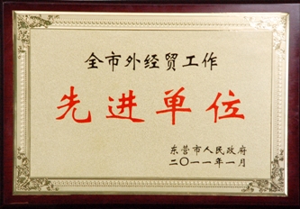 日,在全市商務工作會議上公司被東營市人民政府授予“全市外經貿工作先進單位”,表彰公司在