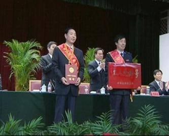 4月27日,在東營市慶祝五一國際勞動節暨先模表彰大會上,市委書記張秋波為董事長趙曰嶺頒發全國五一勞動獎章證書。