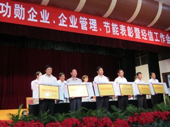 7月7日,市委市政府召開全市功勛企業、企業管理、節能表彰暨經信工作會議,在會議上,我公司被授予“首屆東營市功勛企業”、“東營市節能先進企業”榮譽稱號,受到大會表彰獎勵。