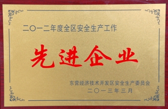 近日,東營經濟技術開發區安全生產委員會授予新材料公司2012年度安全生產先進企業稱號,以表彰公司在有效防范各類事故發生,確保全區安全生產形勢持續穩定,推動高效生態園區建設中做出的突出貢獻。