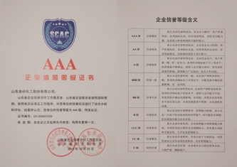 公司被再次評(píng)為山東省AAA信譽(yù)企業(yè)